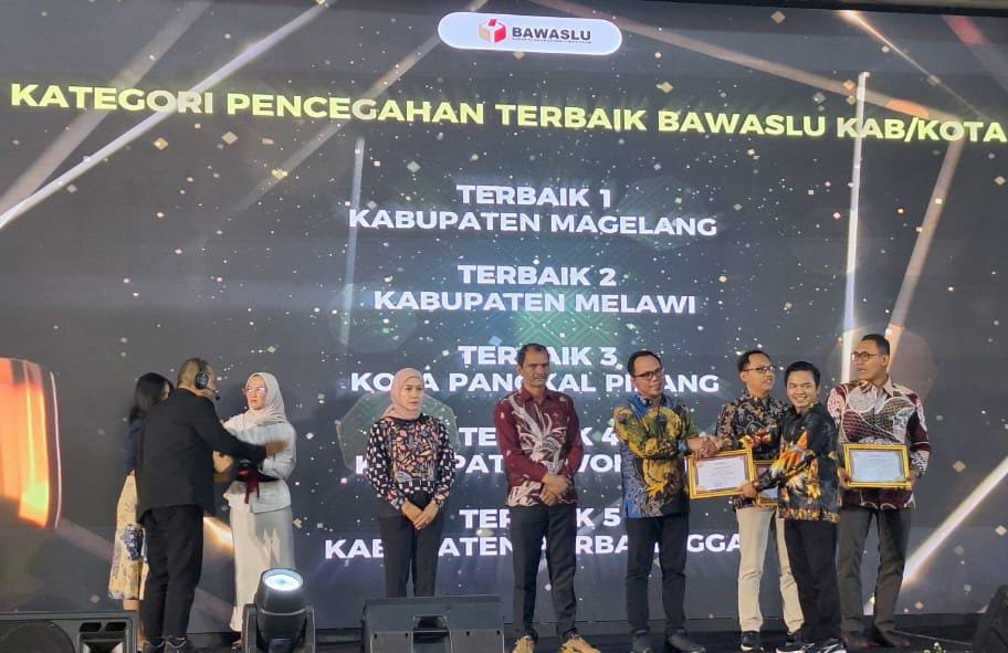 Penghargaan ini diterima Bawaslu Kota Pangkalpinang atas keberhasilannya dalam mencegah pelanggaran sengketa administratif dan dugaan tindak pidana pemilu dan Pilkada langsung 2024-2025.