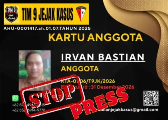PANGKALPINANG – Organisasi Tim 9 Jejak Kasus secara resmi mengumumkan pencabutan kartu tanda anggota (KTA) atas nama Irvan Bastian melalui pengumuman Stop Press yang disampaikan kepada publik.
